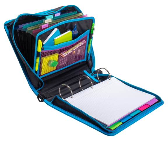 Keep yourself organized and your papers protected in the Case-it Mighty Zip Tab Monster Zipper Binder. Not only can you express yourself with the fun, new Monster line – you can knock out your schoolwork like a champ! The Mighty Zip Tab Monster has standard ring size of 3 inches that holds up to 600 sheets. With that much room, keeping up with all of your classes is a breeze! For even more organization this binder comes with an expanding file folder that helps you separate 5 subjects easily. Access your files easily when the binder is closed with the patented U-shaped opening on the gusset. With no shortage of interior and exterior zippered pockets you can keep more items contained in one place. The exterior zipper pocket is great for storing a couple of pencils or pens for quick access. Keep your schoolwork from falling out or getting damaged with our durable zippered gussets. The zippers are self correcting too! Just slide them all the way back down the gusset and they will fix themselves. Take your classroom with you with the handle and shoulder strap that comes included.