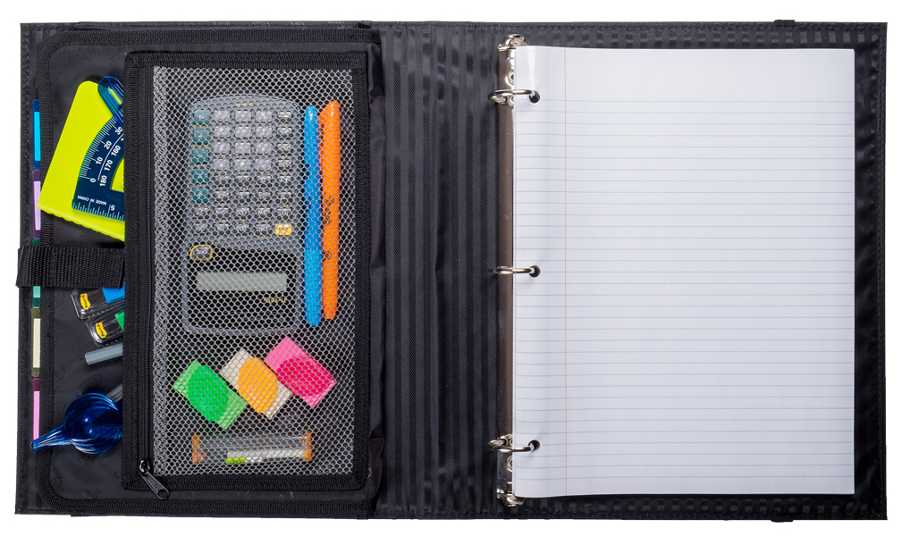 The Case-it Leatherette Binder 1-inch D-Ring binder is an efficiently-designed 3-ring binder with a five-tab expanding file folder. With a durable Faux leather exterior, this binder features an elastic strap closure and interior mesh pocket to store pens, pencils, ruler and more. The LL-PRO-126, like all of Case-it binders, uses Kraft board instead of PE board to give its binders a firm, stiff shape that won’t buckle or warp. The spine is specially designed so that your binder can lay flat when open, making it easier to add or take papers out, and to take notes in. Case-it is committed to helping you organize your life.