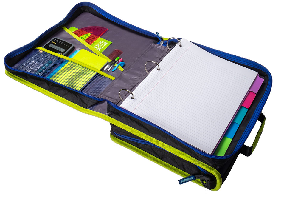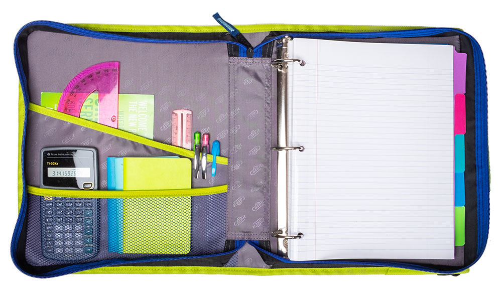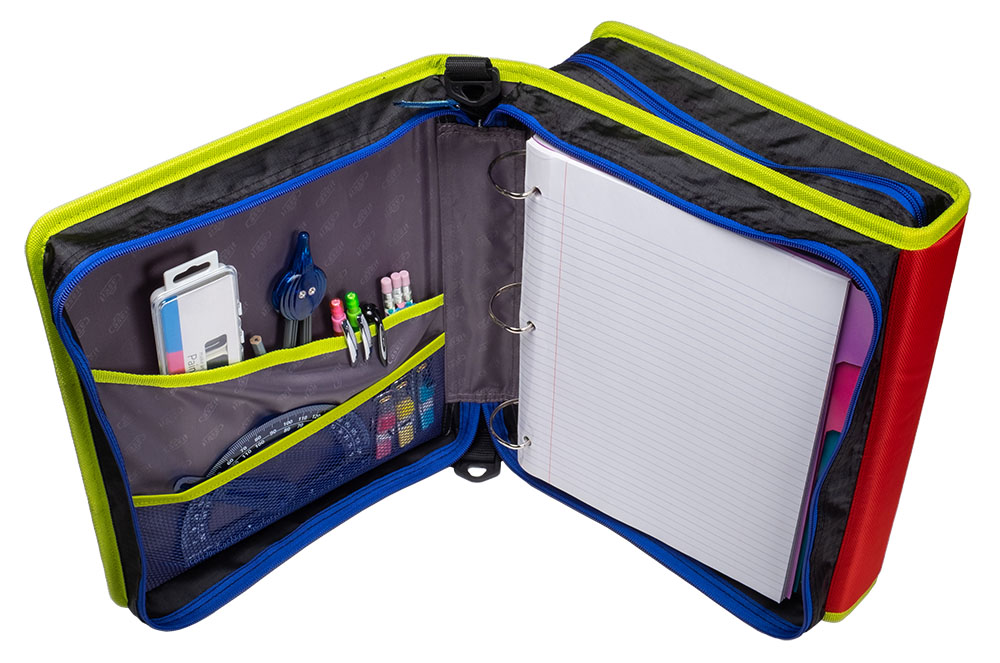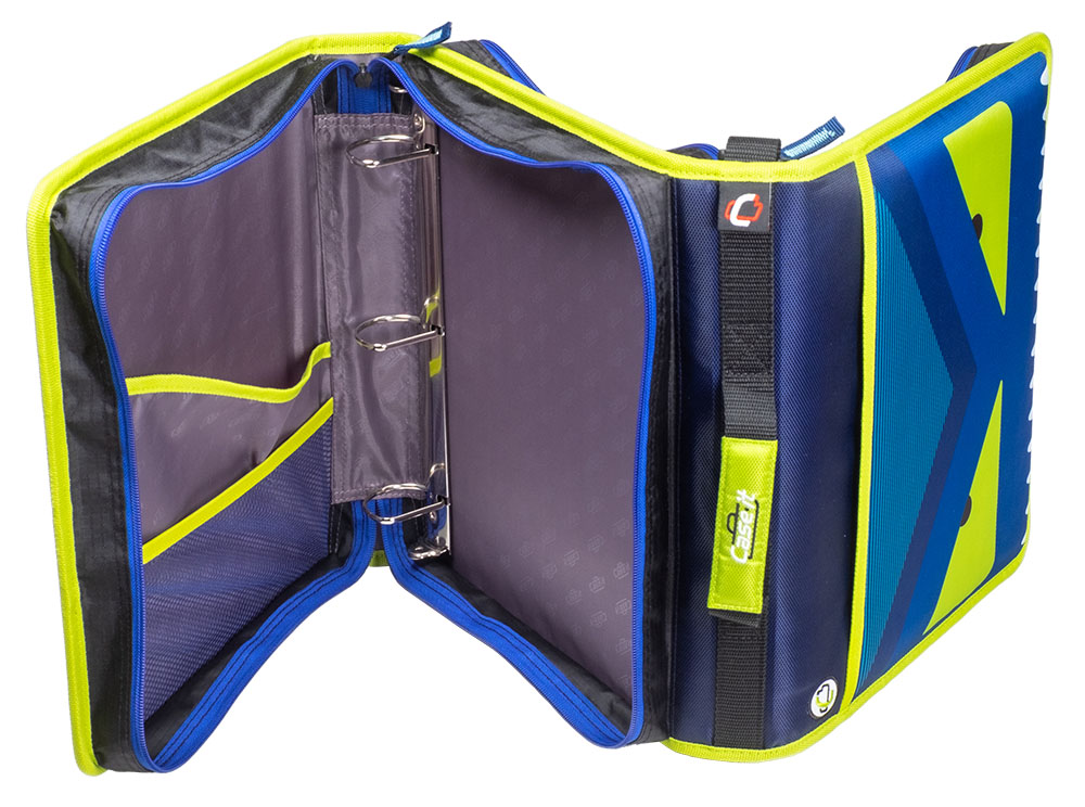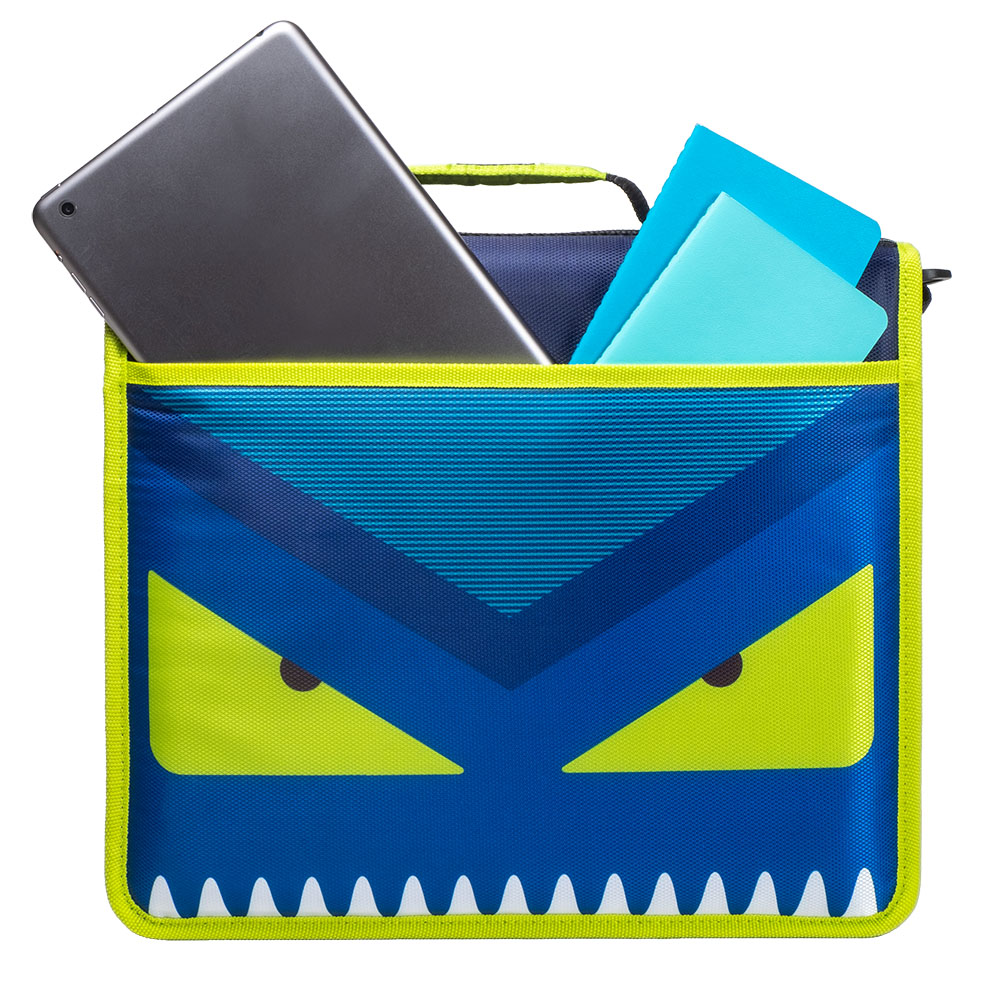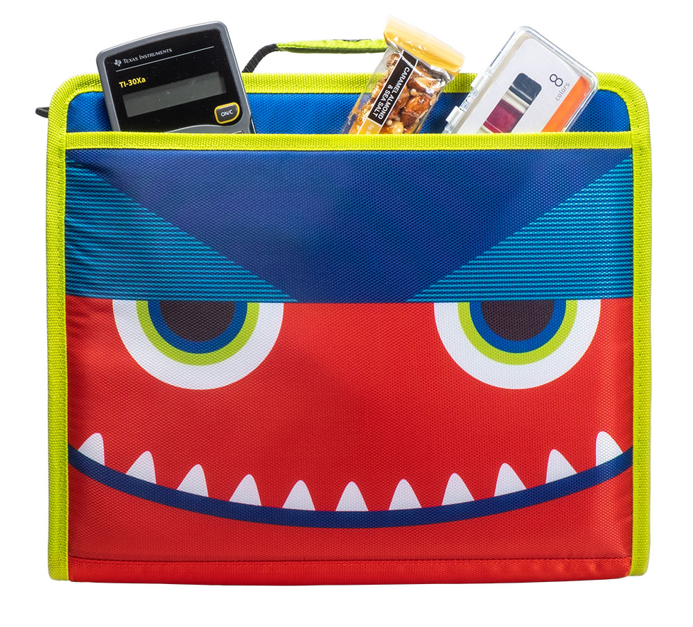 The Case-it “Z” Monster Zipper Binder keeps you ultra-organized at school. Pick your favorite Monster and hit the ground running, The Z Monster binder features an innovative 2-in-1 design that keeps important documents and items organized for easy reference. The “Z” shape features interior and exterior pockets on both sides to double your storage capacity. Use this specialty binder for holding notebooks, pens, calculators, rulers and more. Each section has its own set of 1.5″ D-rings that each hold a 250 sheet capacity, for a combined total of 500 sheet capacity. The durable zipper closure is ideal for keeping your documents safe from falling out or getting damaged. Conveniently the gusset is made with a ripstop material that keep tears from spreading. Does you want to seperate your subjects by class periods? The two-sided design allows you to use each side for specific subjects – giving you the freedom to get organized how you want. For transporting to and from class use the handle or shoulder strap provided.