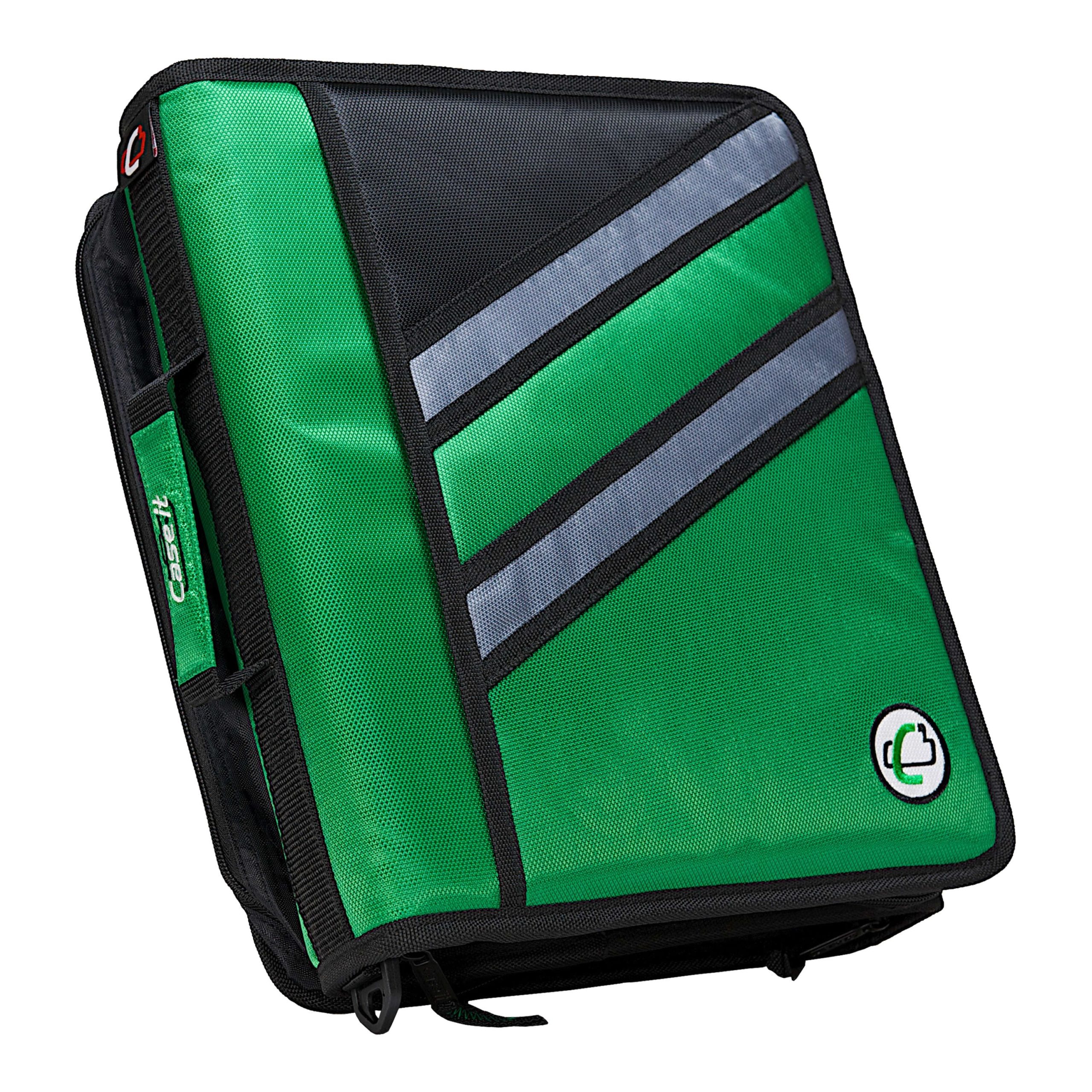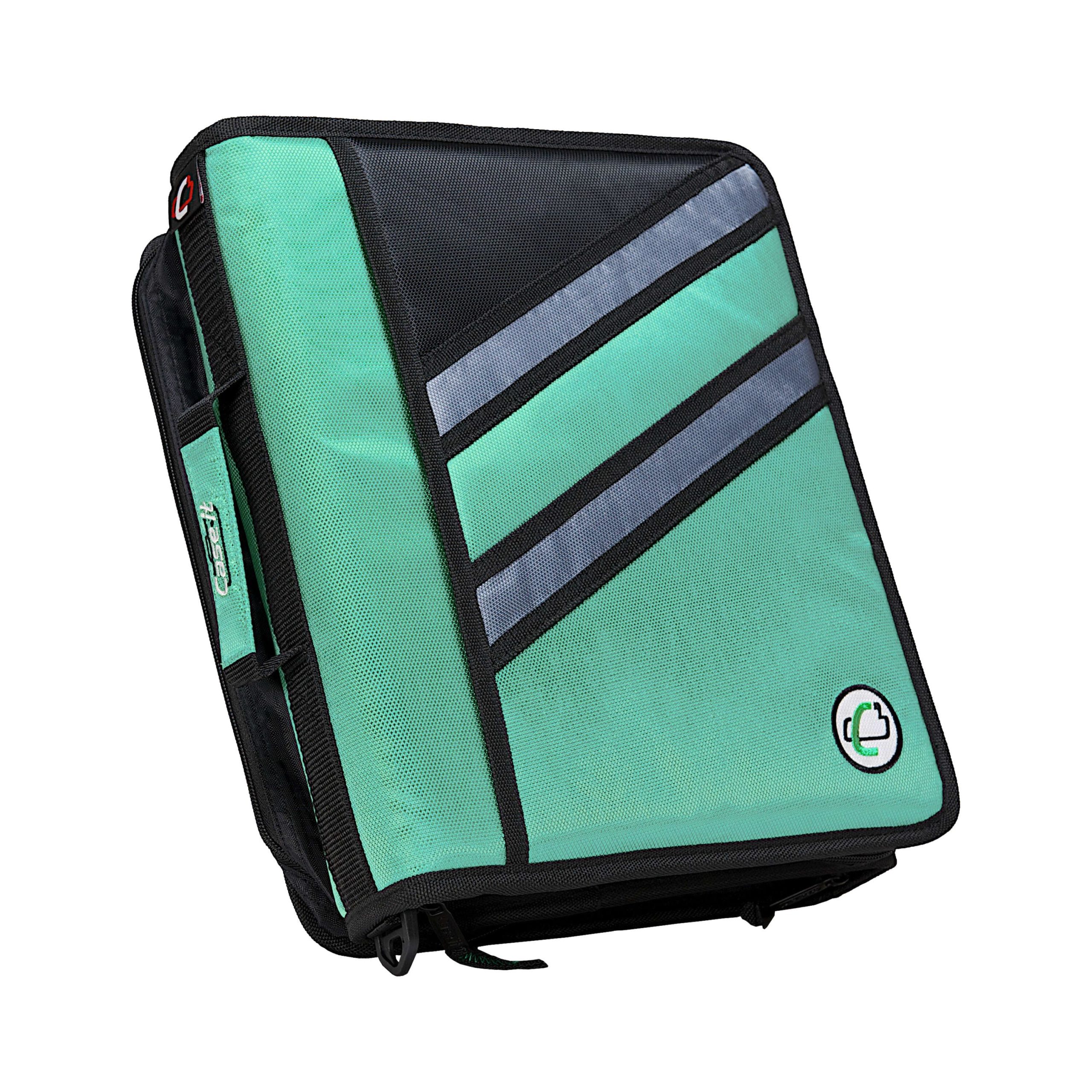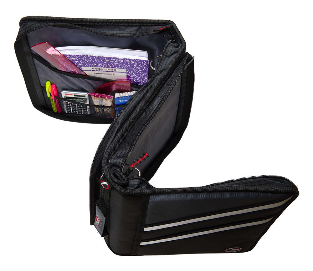 The Case-it “Z” Zipper Binder keeps you ultra-organized at school. The Z binder features an innovative 2-in-1 design that keeps important documents and items organized for easy reference. The “Z” shape features interior and exterior pockets on both sides to double your storage capacity. Use this specialty binder for holding notebooks, pens, calculators, rulers and more. Each section has its own set of 1.5″ D-rings that each hold a 250 sheet capacity, for a combined total of 500 sheet capacity. The durable zipper closure is ideal for keeping your documents safe from falling out or getting damaged. Conveniently the gusset is made with a ripstop material that keep tears from spreading. Does your student want to seperate their subjects by class periods? The two-sided design allows students to use each side for specific subjects – giving the student the freedom to get organized how they want. For transporting to and from class use the handle or shoulder strap provided.